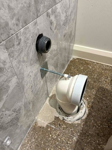 After a careful inspection, the issue became clear: the blockage was lodged behind the in-wall toilet pan. This toilet is sleek and modern but accessing the sewer connection behind it can be challenging.