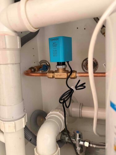A tee connection was then installed, allowing the kitchen tap to retain cold-water access while also supplying the new under-bench unit.