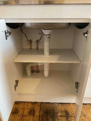 This was more than a simple tap replacement. Removing the old sink and cabinet revealed ageing galvanised pipes, outdated waste lines, and potential issues with electrical bonding. The client wanted reassurance that the work would meet current safety standards and avoid future leaks or compliance problems.