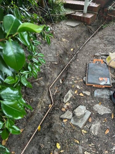 Once on site, the O’Shea Plumbing team conducted a thorough inspection to identify the source of the issue. The investigation revealed that the water line running from the meter to the mains connection into the house had deteriorated over time. Years of use, combined with inconsistent water pressure, had weakened the pipe, creating a high risk of ongoing leaks and sudden failure.