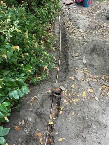 Every connection was securely crimped and thoroughly tested for leaks and pressure performance. Once the system passed all checks, the trench was carefully backfilled, all debris removed, and the site was left clean and tidy.