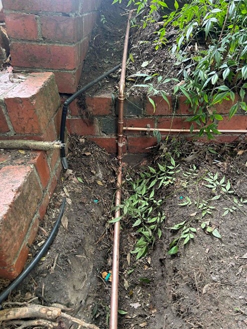Once on site, the O’Shea Plumbing team conducted a thorough inspection to identify the source of the issue. The investigation revealed that the water line running from the meter to the mains connection into the house had deteriorated over time. Years of use, combined with inconsistent water pressure, had weakened the pipe, creating a high risk of ongoing leaks and sudden failure.